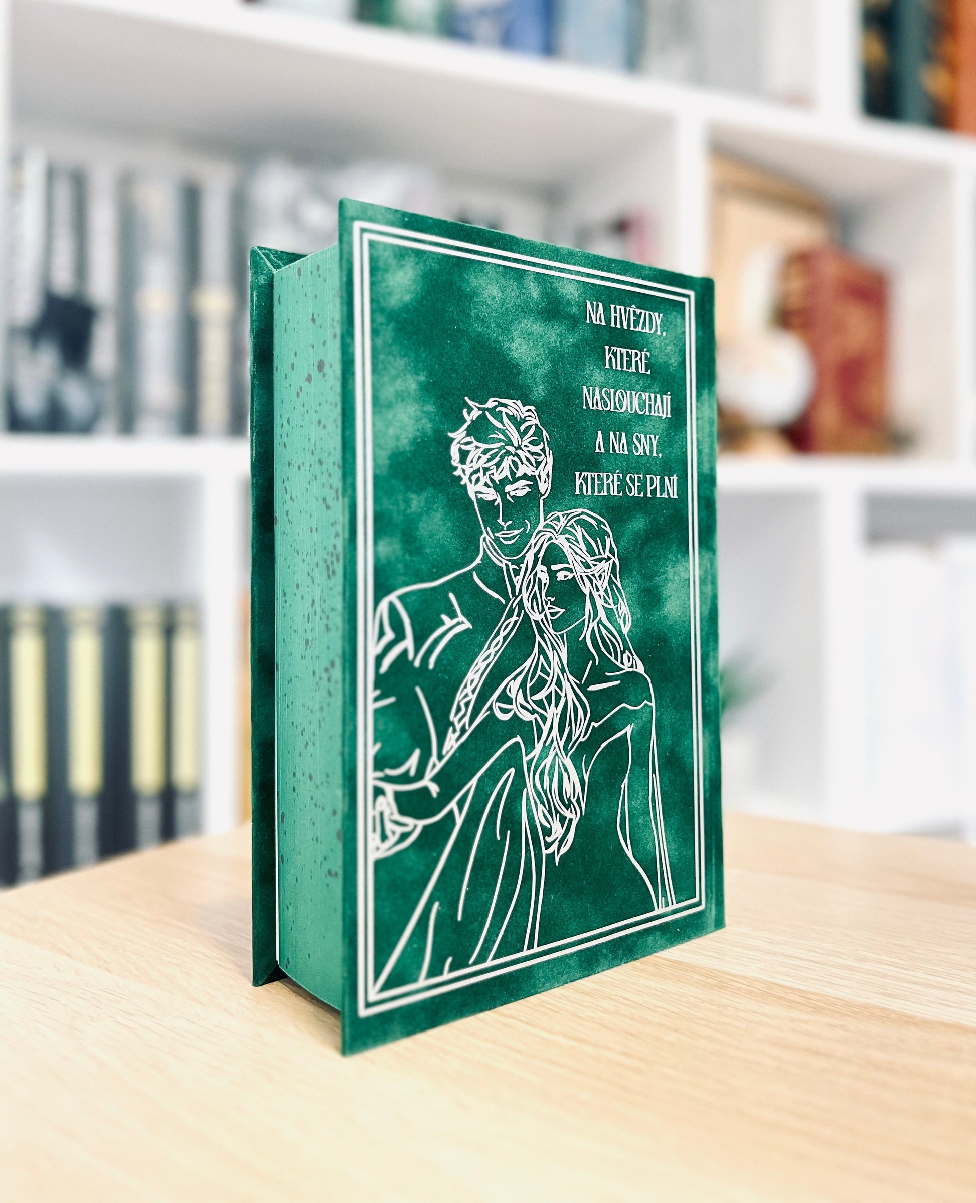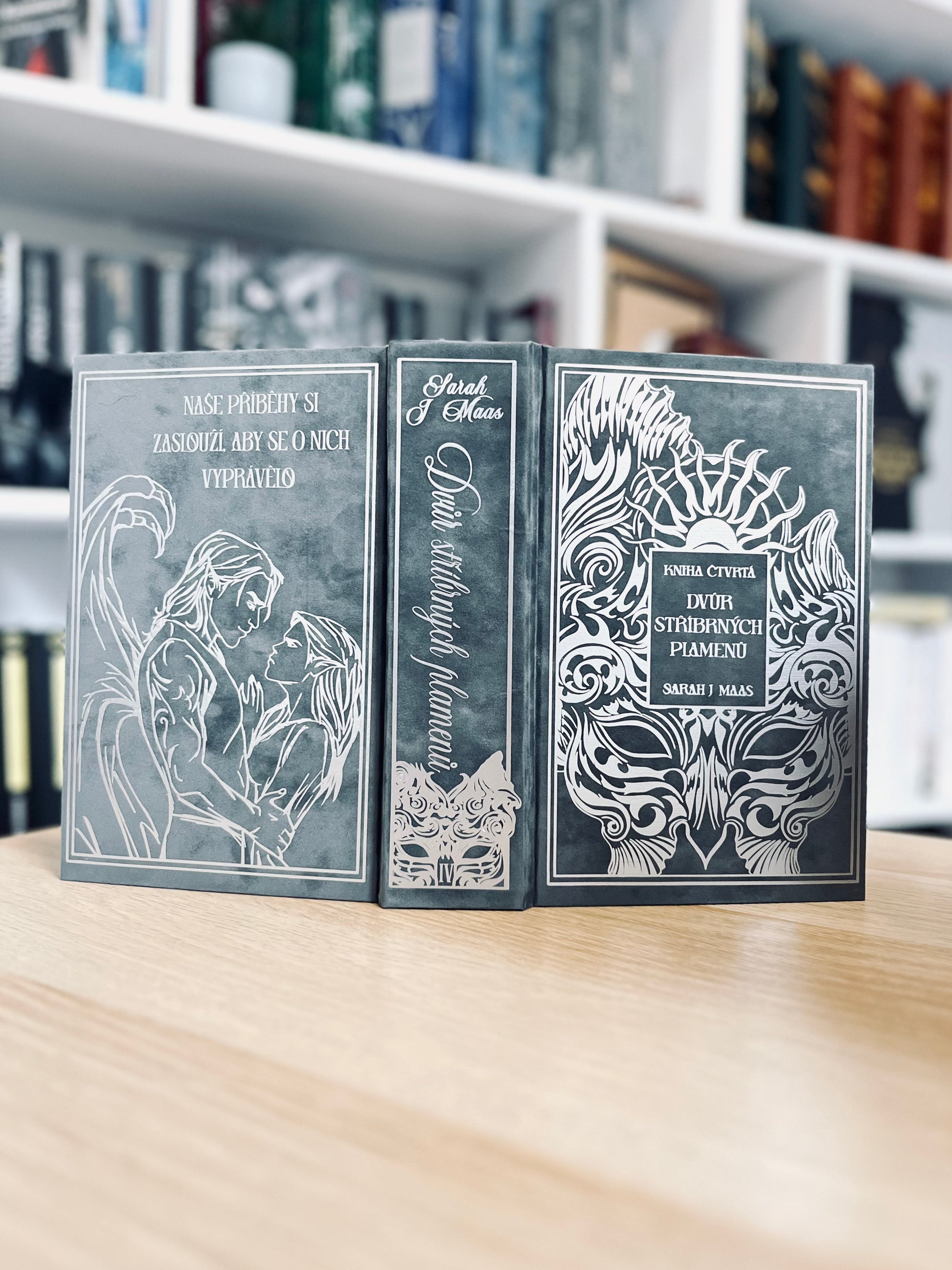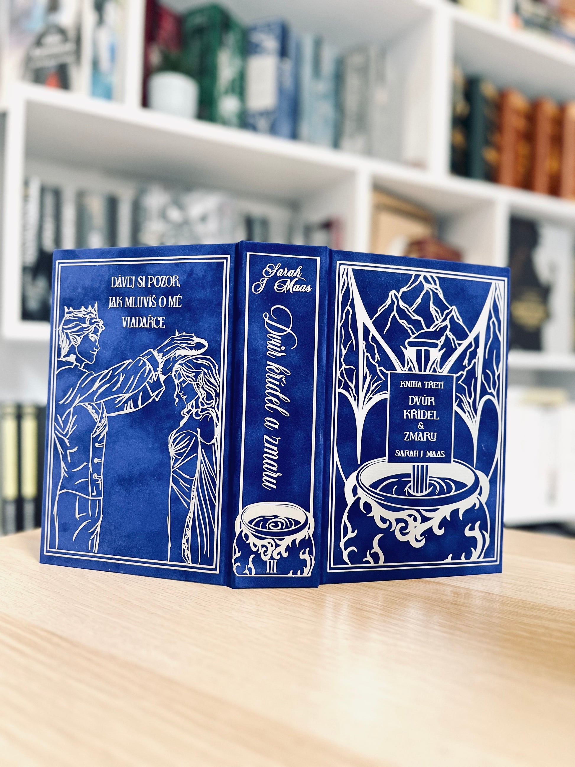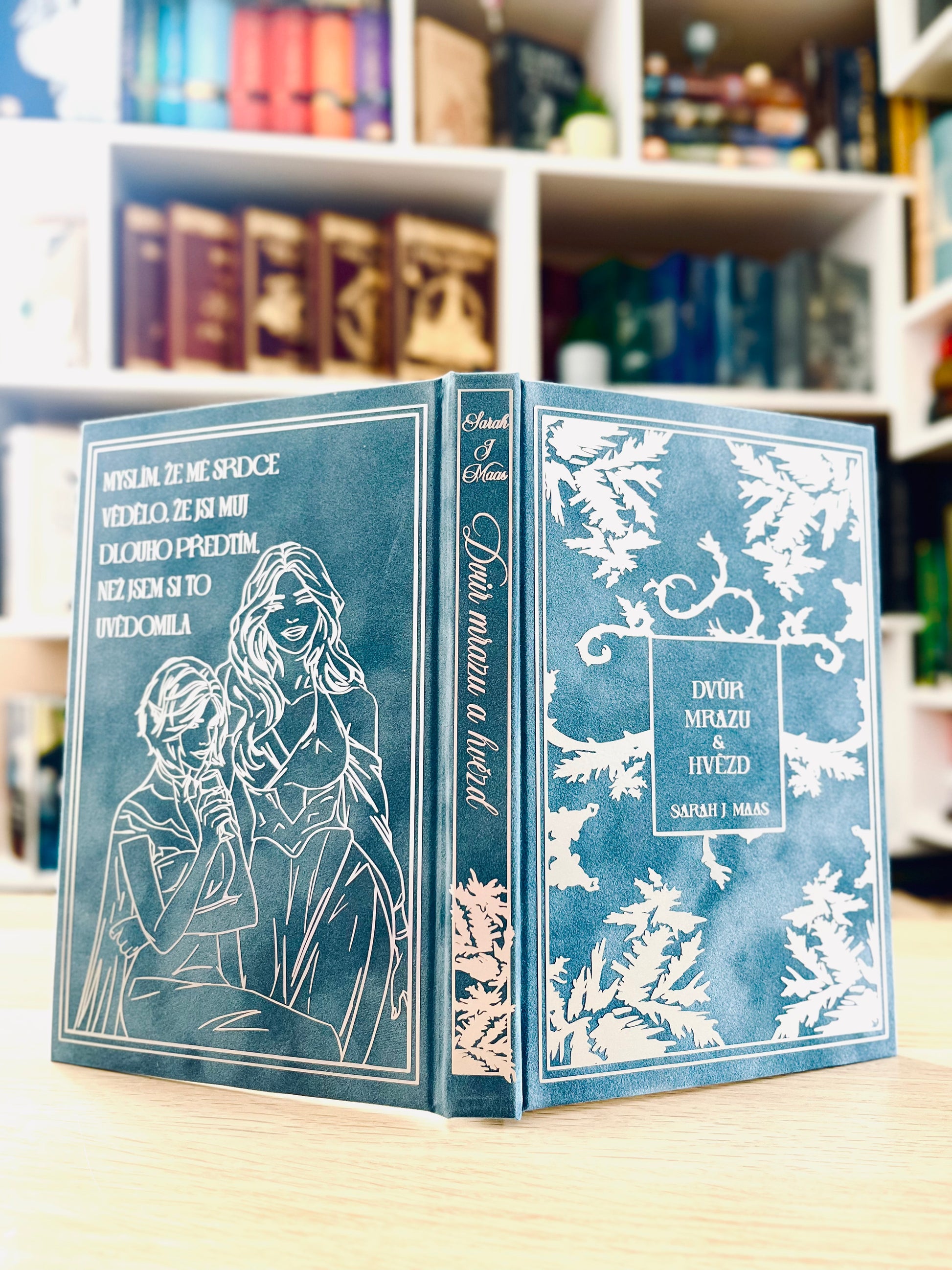✨Tato výjimečná speciální edice je ručně převázaná do jemného semišového přebalu, zdobeného jedinečným designem nakresleným majitelkou BookyBind.