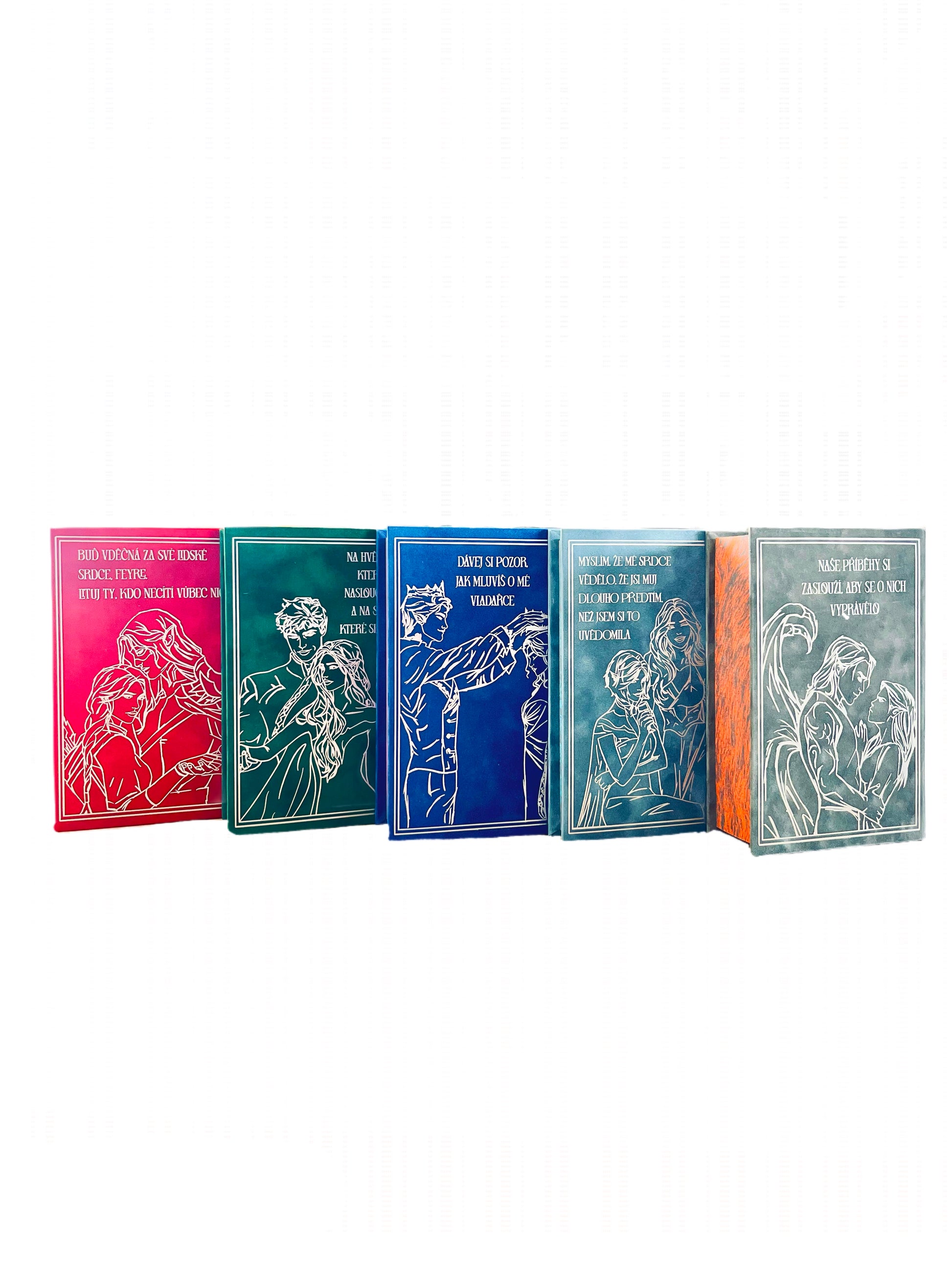 Máte pro svou sérii knih speciální přání? Přejete si nějakou změnu či doplnění designu? Rádi byste na zadní straně každé knížky měli své iniciály? Žádný problém! Stačí nám poslat bližší informace do chatu, který vidíte v pravém dolním rohu a společně doladíme všechny detaily.